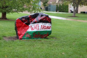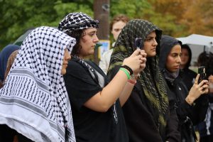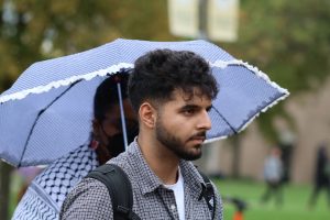 The Student Walk Out opened with a powerful reflection on the significance of October 7; recognized as both a day of Palestinian resistance and a turning point when the world could no longer avert its eyes from the brutal realities of the US/Israeli occupation. Throughout the day, it was unmistakable; the spirit that fueled the encampment still burns in every student who stood in solidarity that day.